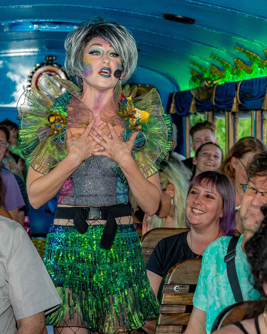 LaZoom offers unforgettable citywide afternoon and evening tours that are the perfect way to experience Asheville, whether you’re new to town or a longtime resident. Packed with history and humor, our City Tours highlight hilariously entertaining guides, comedic skits with surprise characters, tons of Asheville facts, and breathtaking views of downtown Asheville, the gorgeous Montford neighborhood, and the vibrant River Arts District. This isn’t your ordinary bus ride—it’s a one-of-a-kind vaudeville performance on wheels!