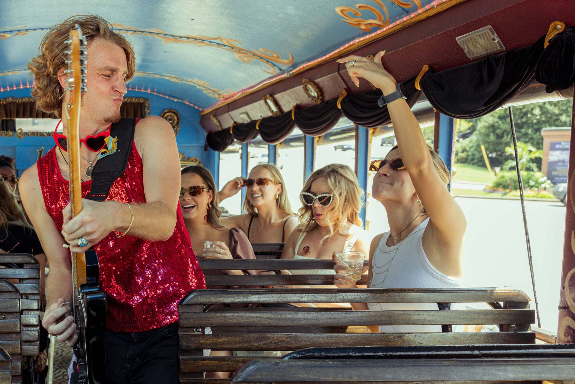 The Fender Bender is a BYOB party bus with a live band playing sing-a-longs while you and your crew cruise the trendiest neighborhoods and uptown Charlotte NC. Three bar stops along the way gives you squad time to soak in the vibes, grab another round, and toast the bride-to-be